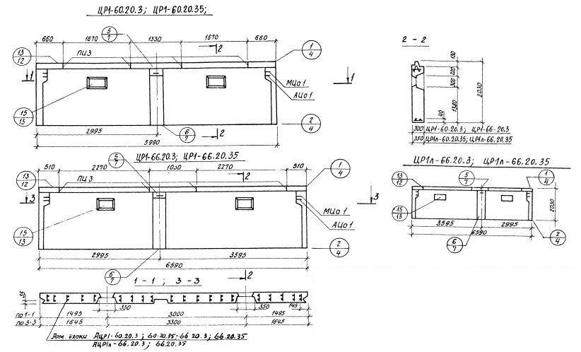 Серия 1.117-13    Панели наружных цокольных стен групп ЦР1; ЦР4; ЦР5  толщиной 300, 350, 400 мм.
