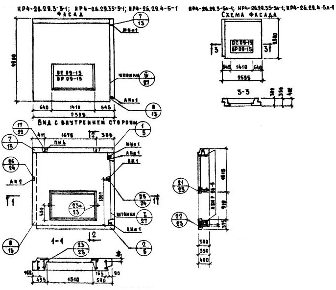 НР4-26.29.35-5л-1   Наружная стеновая панель рядовая по Серии 1.132-1.