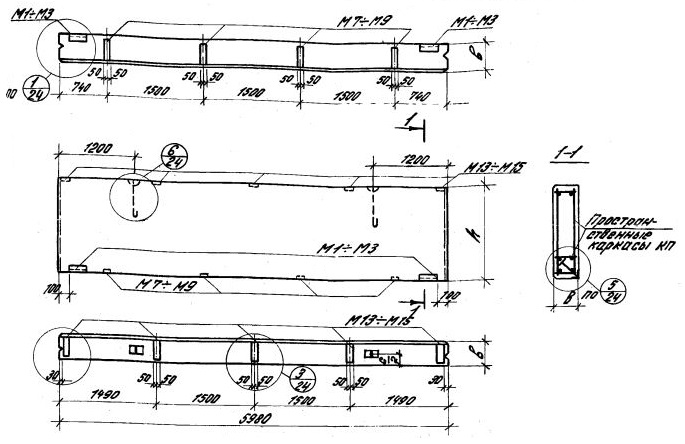 ПС 600.12.30-я-6    Подкарнизная панель-перемычка при простенках длиной 1,5 м.